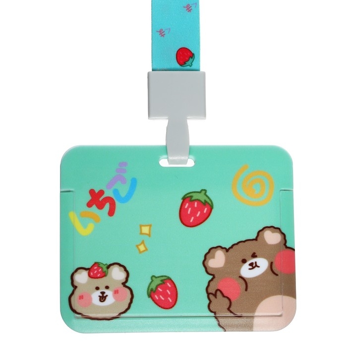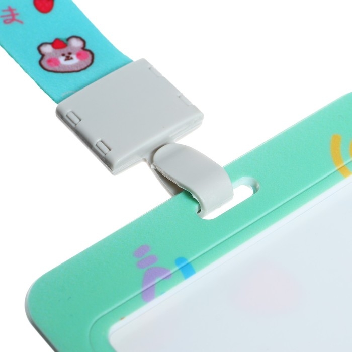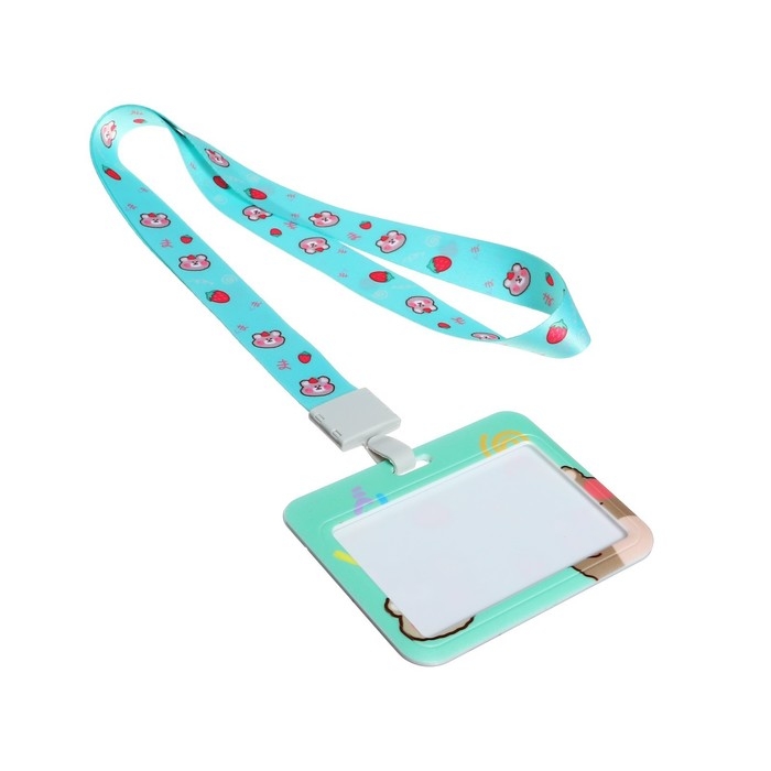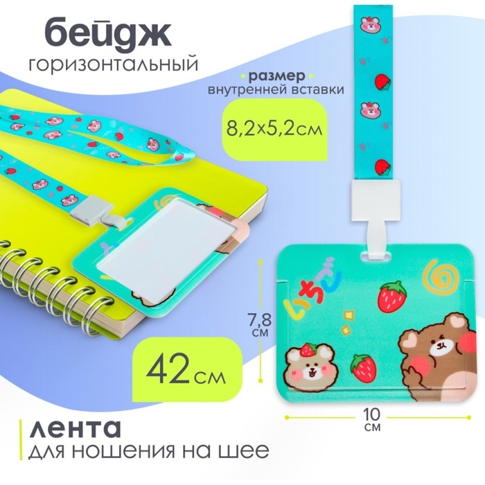 Бейдж горизонтальный, внешний размер 10 х 7,8 см, внутренний размер 5,2 х 8,2 см, лента 42 см, с рисунком "Мишки"
