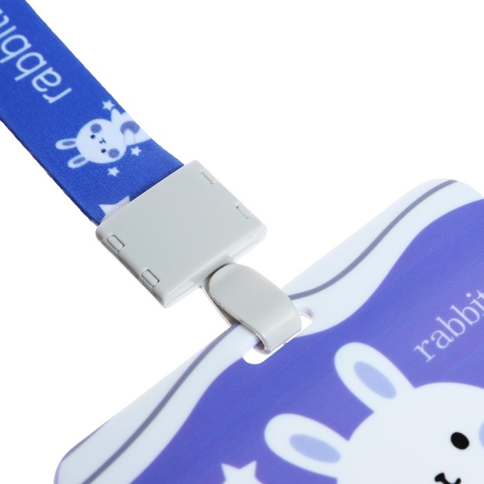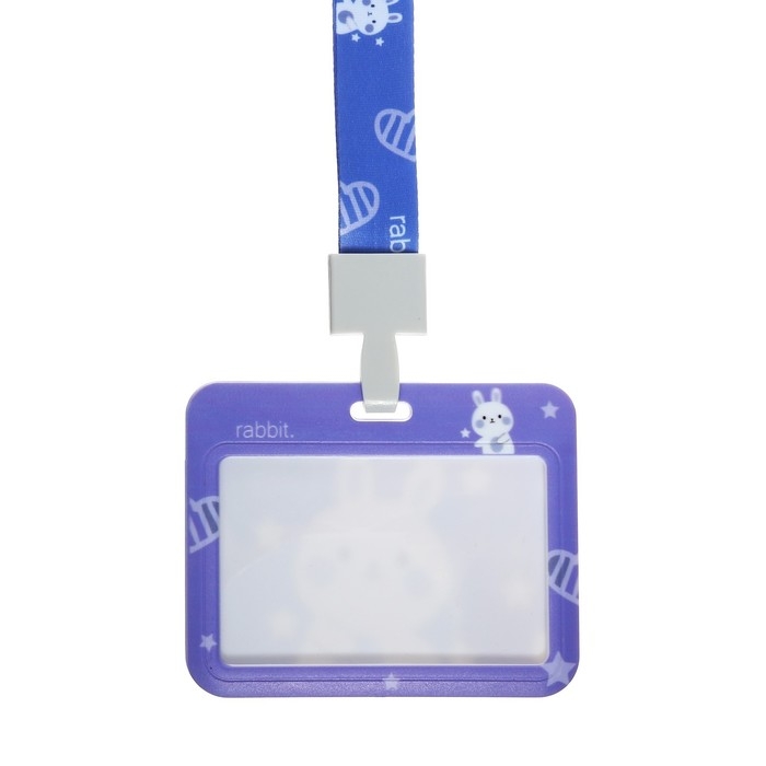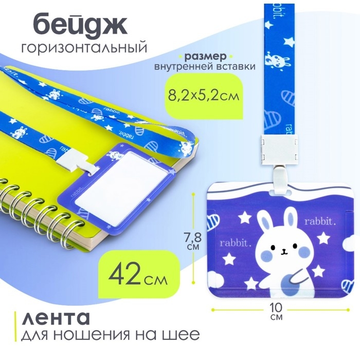 Бейдж горизонтальный внешний размер10 х 7,8 см, внутренний размер 5,2 х 8,2 см, лента 42 см, с рисунком Зайка
