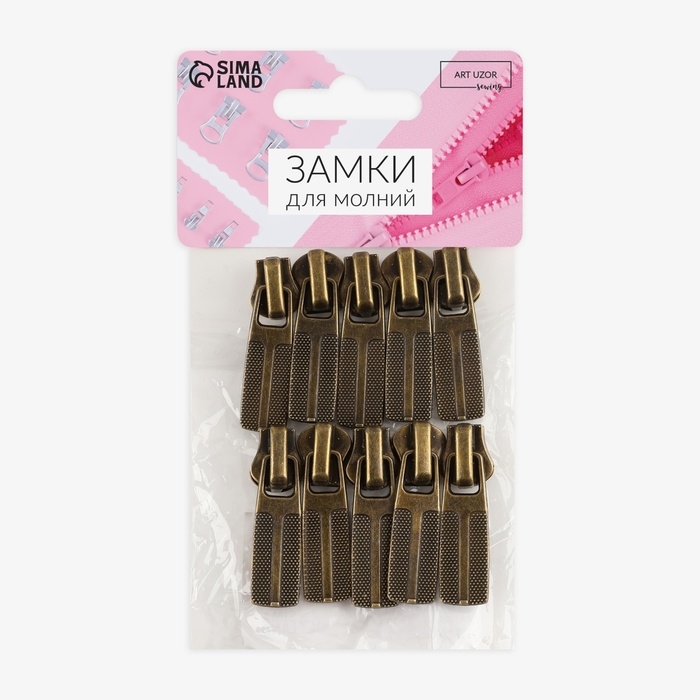 Бегунок автоматический для металлической молнии, №5, 10 шт, цвет антик