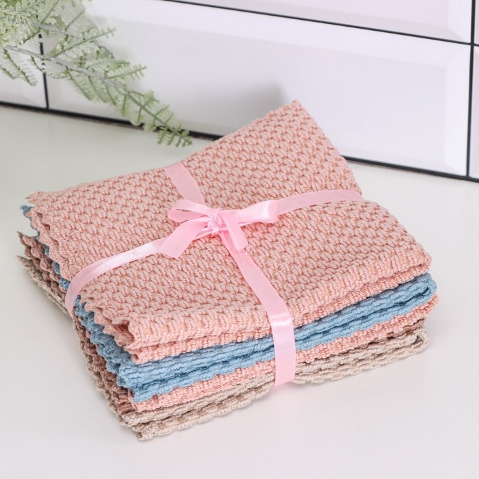 Набор салфеток из микрофибры Доляна «Бантик», 30×30 см, 5 шт