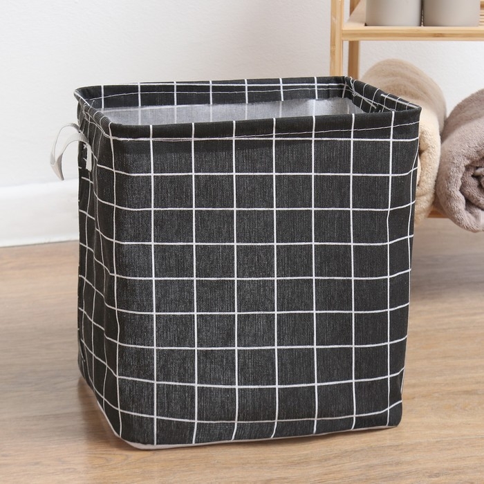 Текстильная корзина Доляна Клетка черная, 32*32*32 см
