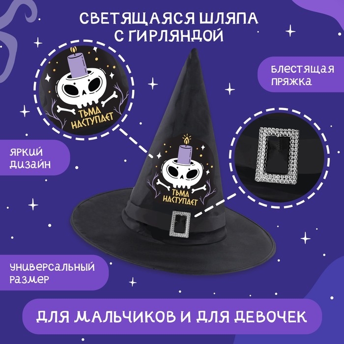 Хотите подарить себе и близким незабываемую атмосферу на Хэллоуин? Тогда карнавальная шляпа «Кошмарное веселье» с гирляндой поможет вам! С ней вы перевоплотитесь в коварного покровителя ночи, заслужите восхищённые взгляды и комплименты на костюмированной вечеринке. Создайте яркие эмоции и воспоминания!