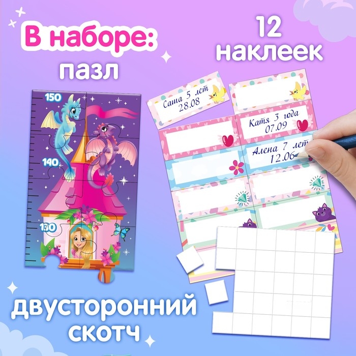 Пазл-ростомер «Друзья принцессы», с наклейками
