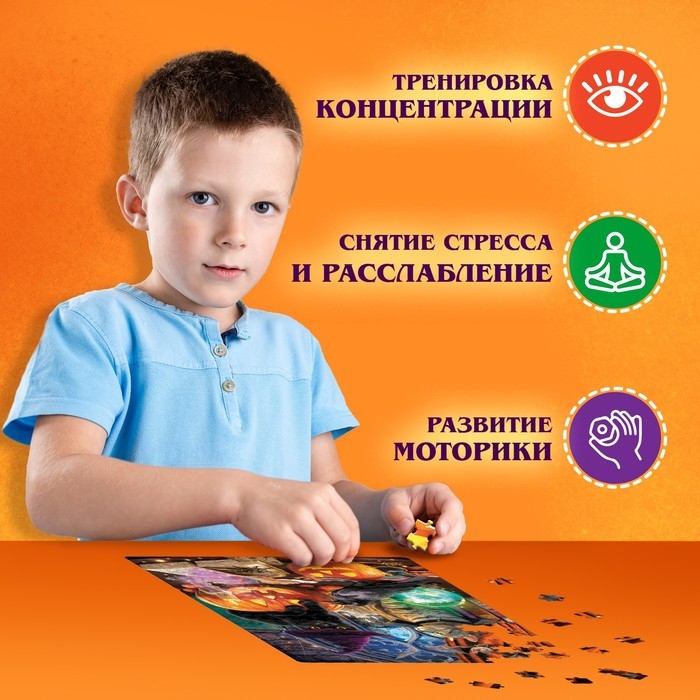 Пазл с хэллоуинским сюжетом — то, что нужно для полезного и увлекательного досуга в канун Дня Всех Святых! Такой презент станет приятным дополнением к основному подарку и заинтересует малыша необычным сюжетом.