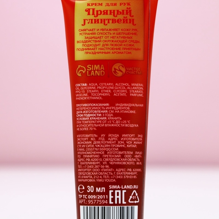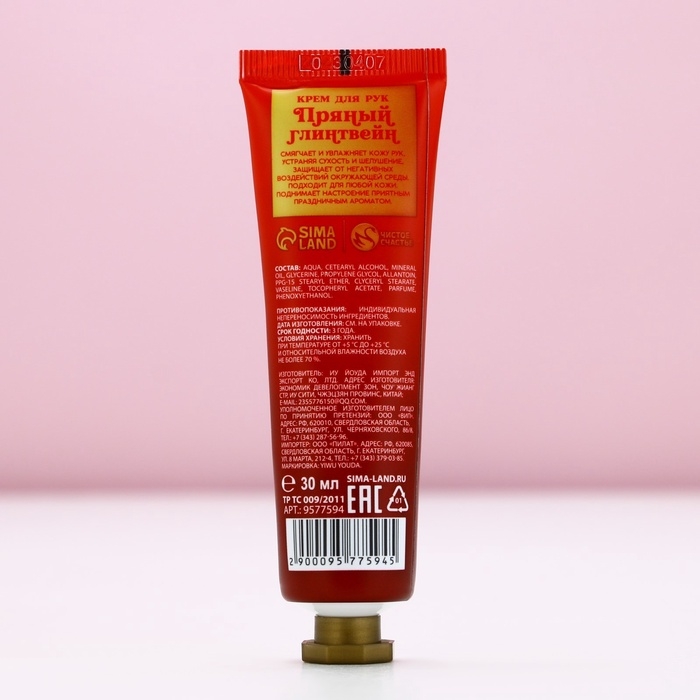 Крем для рук «С Новым Годом!», 30 мл, аромат пряного глинтвейна, ЧИСТОЕ СЧАСТЬЕ