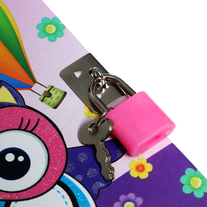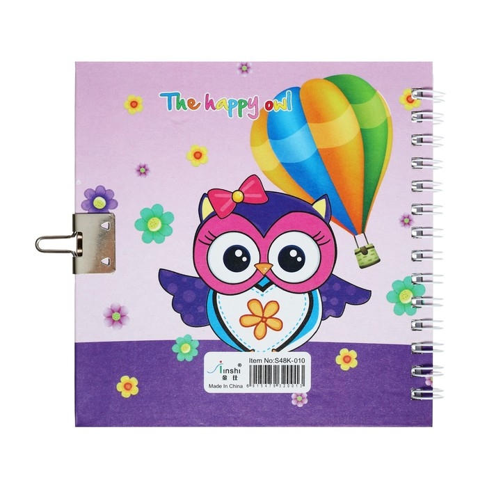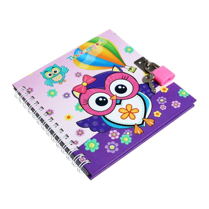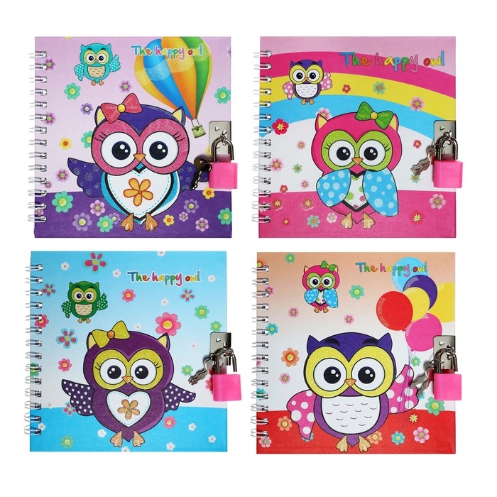 Записная книжка подарочная формат А6, 45 листов, на замке, на гребне, линия, "Сова", МИКС
