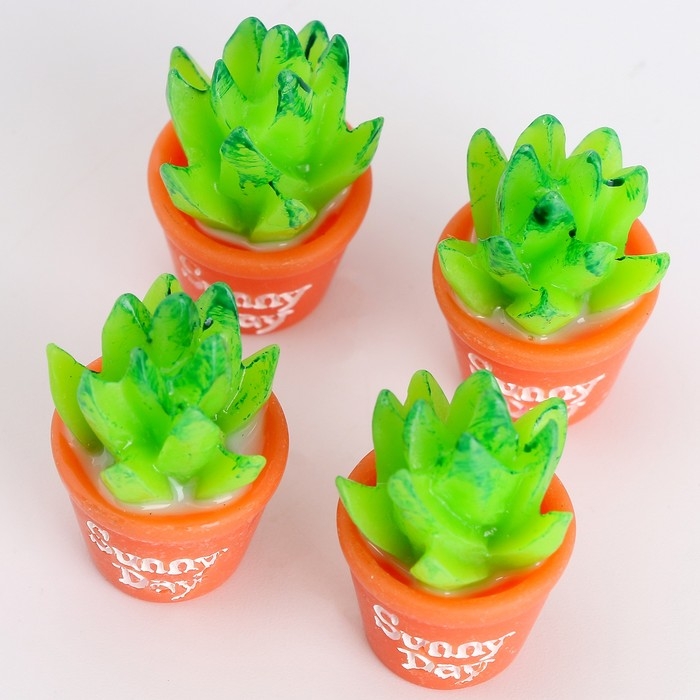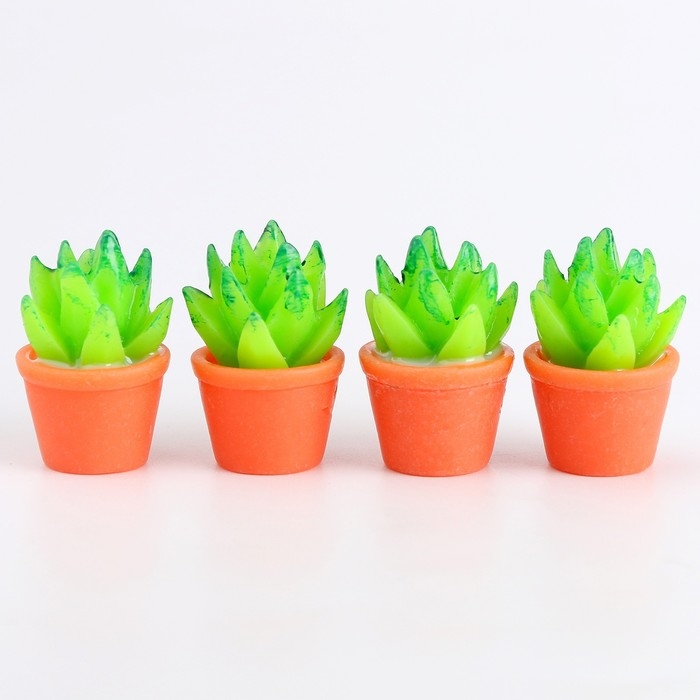 Миниатюра кукольная «Зеленый кактус», набор 4 шт., размер 1 шт. — 1,5 × 2,5 × 1,5 см