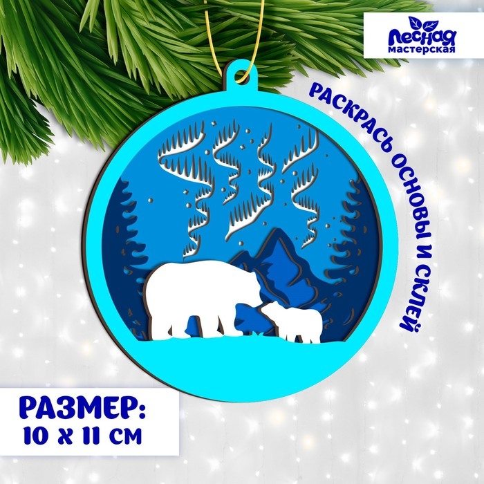 Заготовки для творчества. Деревянная ёлочная подвеска «Новый год! Белые медведи»