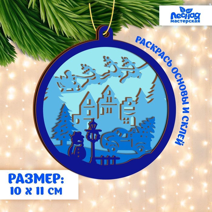 Заготовки для творчества. Деревянная ёлочная подвеска «Новый год! Ночной город»