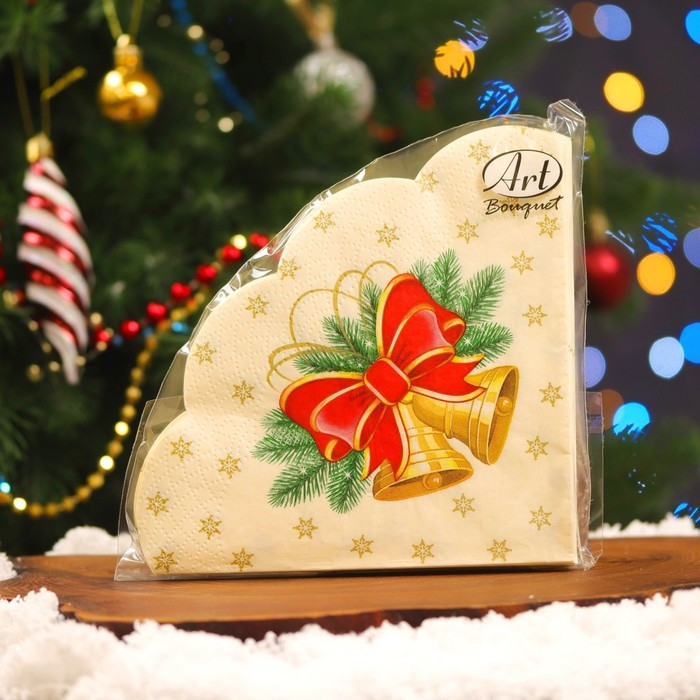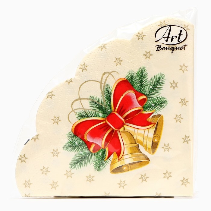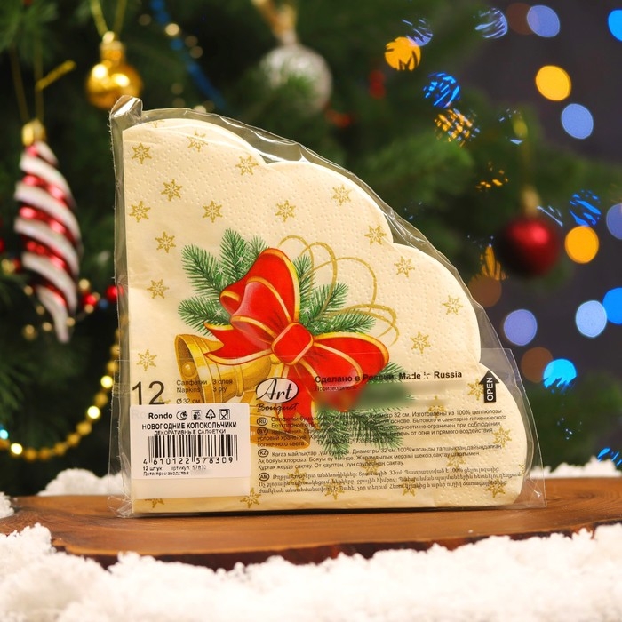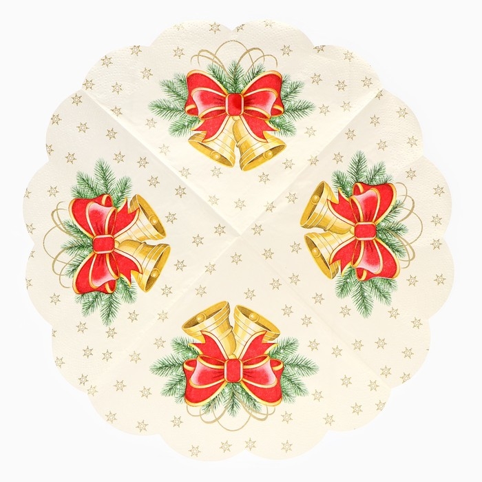 Новогодние салфетки бумажные Art Bouquet Rondo «Новогодние колокольчики», 3 слоя, d 32 см., 12 шт.