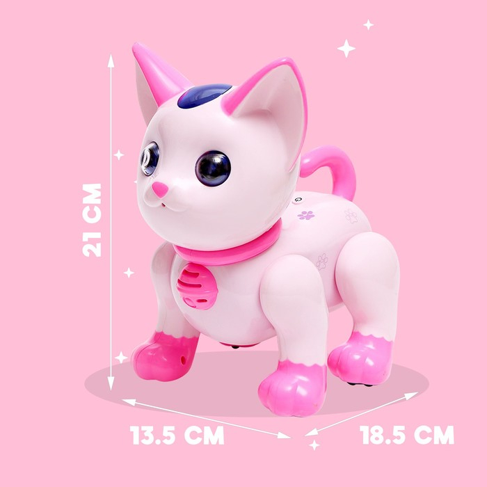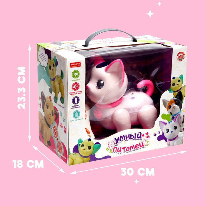 Робот кот «Умный питомец» ZHORYA, программируемый, на пульте управления, интерактивный: звук, свет, танцующий, музыкальный, на батарейках, на русском языке, розовый