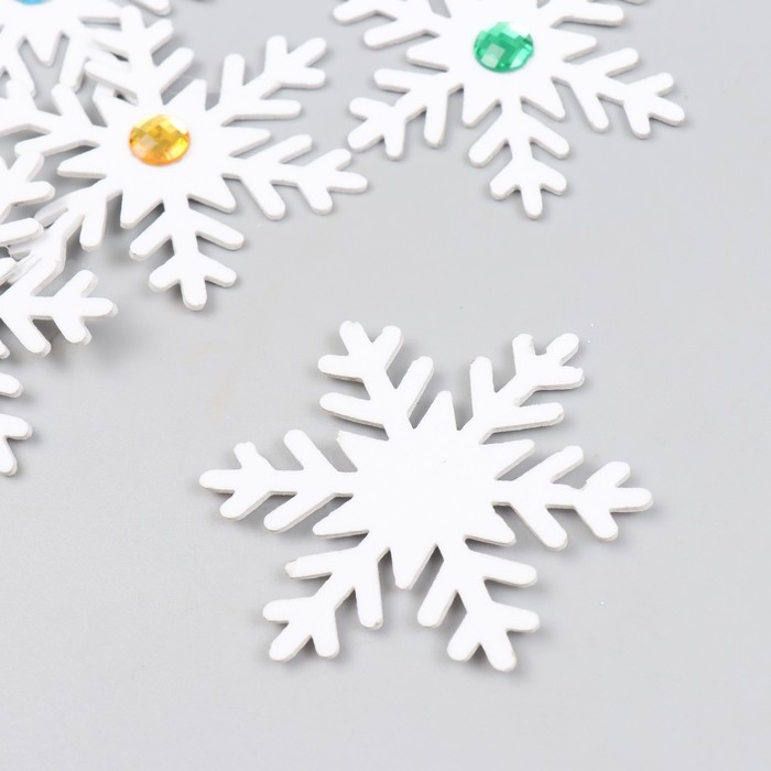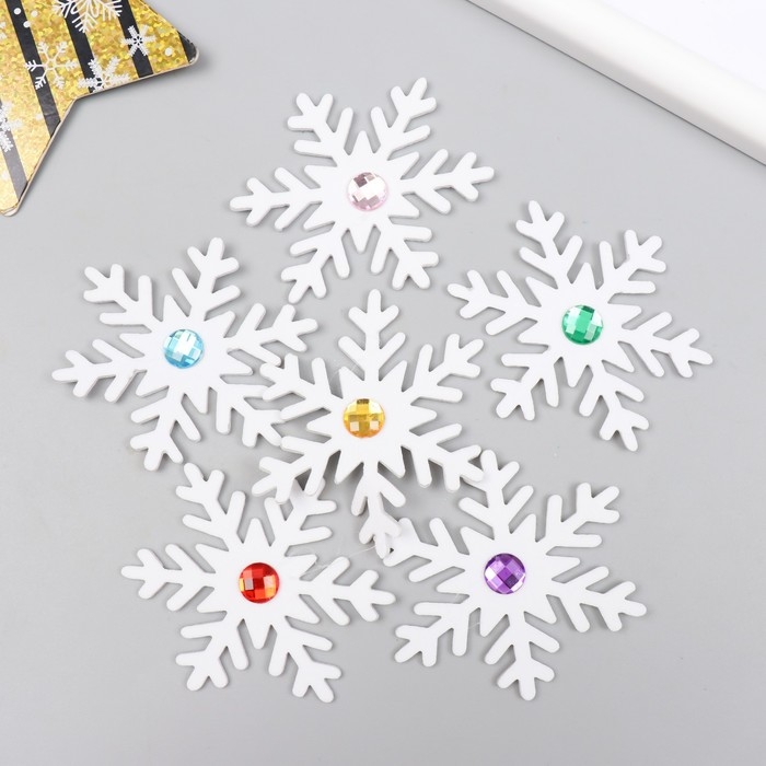 Декор "Снежинка со стразой" белая 6,5 см фоам (набор 6 шт)
