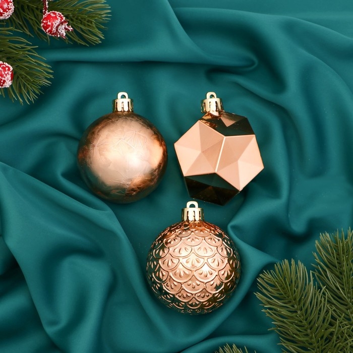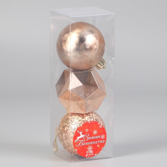 Набор шаров пластик d-6 см, 3 шт "Северное сияние" грани, золото