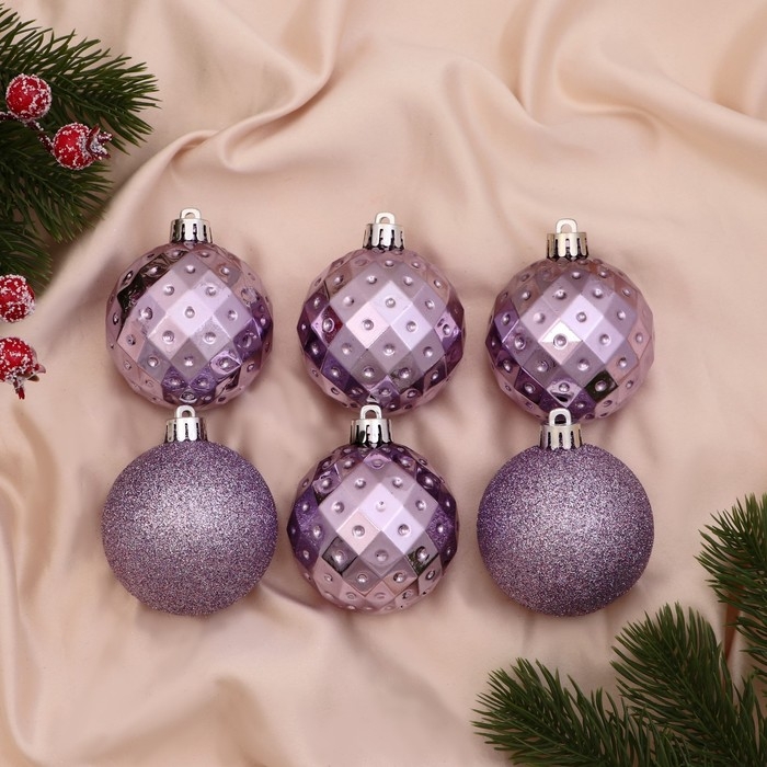 Набор шаров пластик d-6 см, 6 шт "Элит геометрия" сиреневый