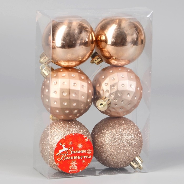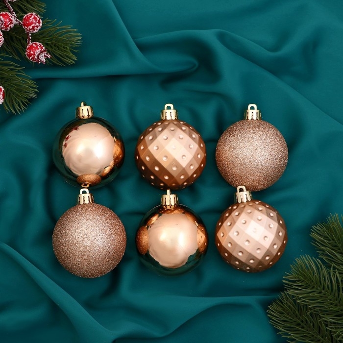 Набор шаров пластик d-6 см, 6 шт "Элит геометрия" золото