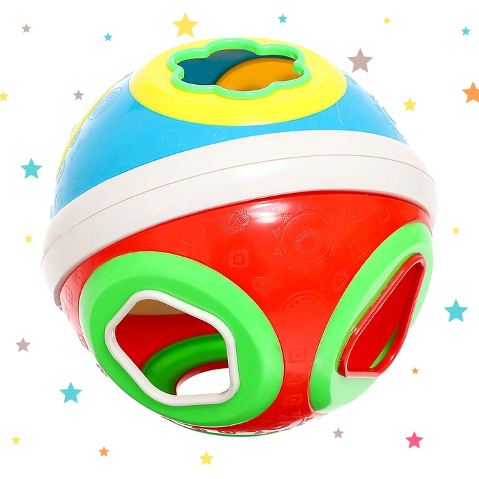 - Шарик легко разбирается, поэтому малыш без труда сможет вытаскивать фигурки и вставлять их снова в отверстия.