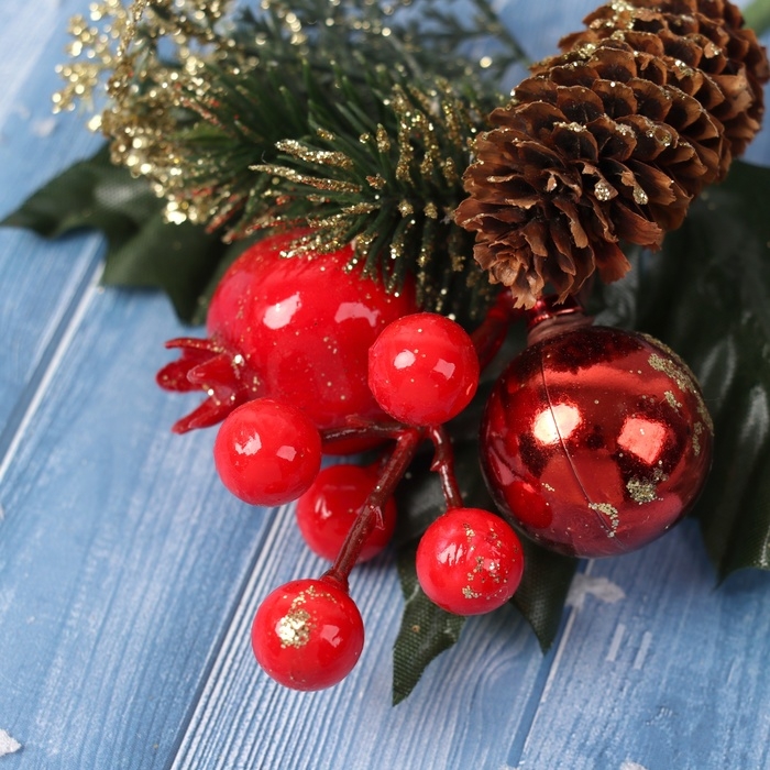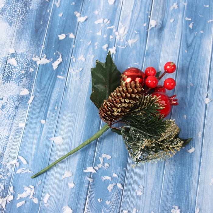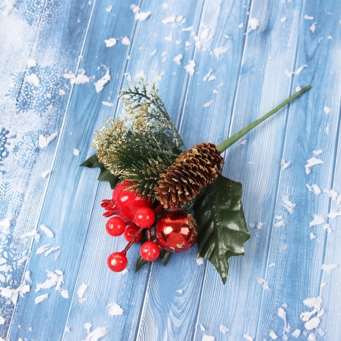 Декор "Зимние грезы" яблоки ягоды шишка веточка со снегом, 15 см