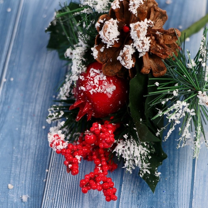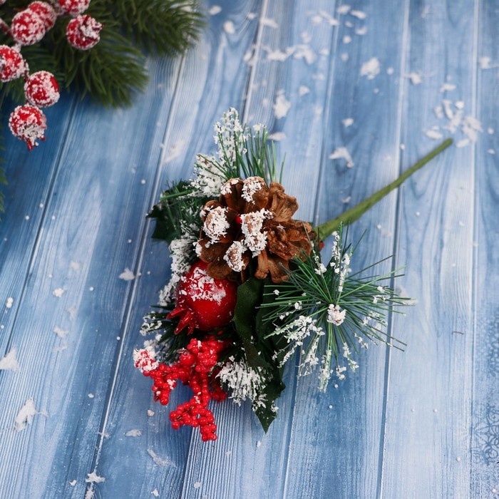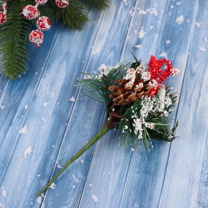 Декор "Зимние грезы" морошка снежные шишки и веточки, 19 см