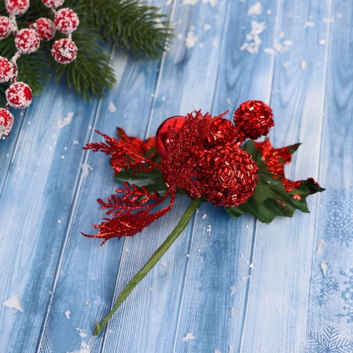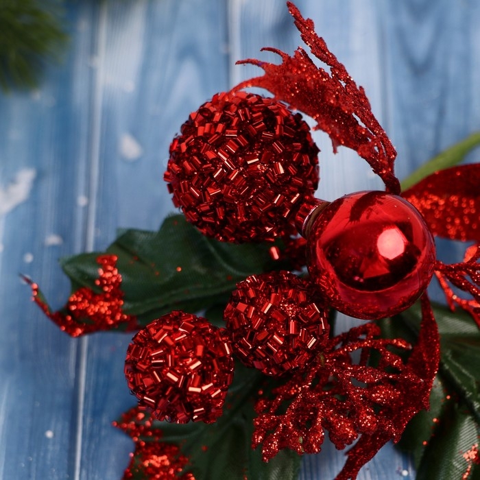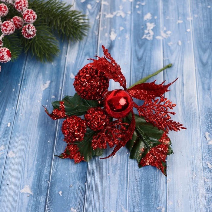 Декор "Зимние грезы" красные шары листья веточки, 16 см