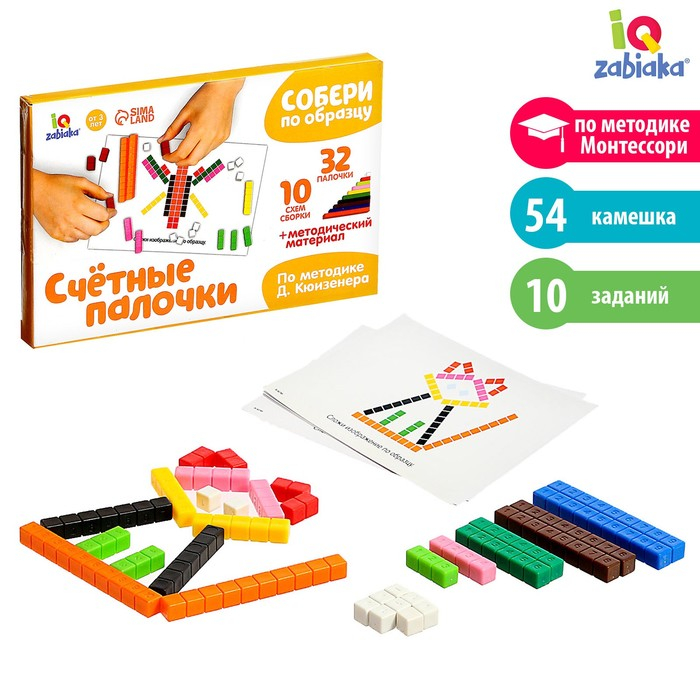 Счётные палочки «Собери по образцу», 32 шт., с карточками, по методике Монтессори