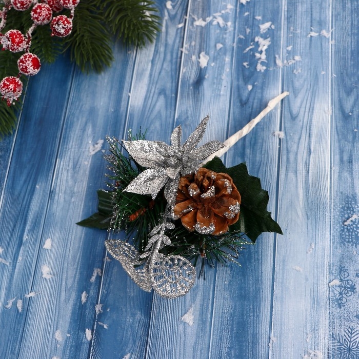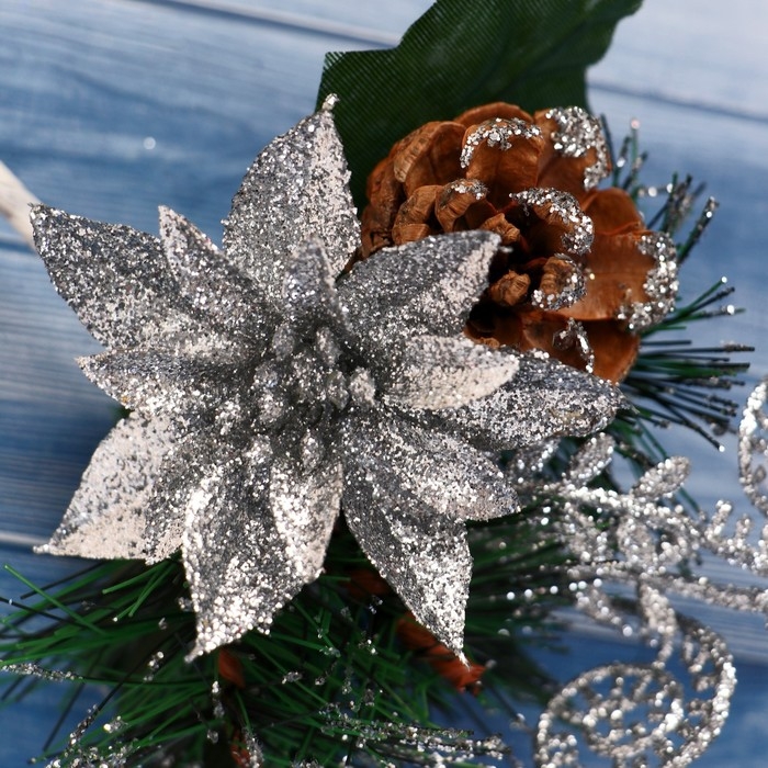 Декор "Зимние грезы" шишка серебряный цветок, 18 см