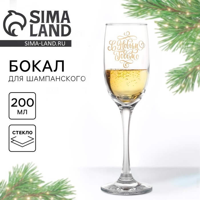 Бокал для шампанского новогодний «С Новым годом!», на Новый год, 200 мл