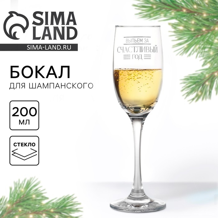 Бокал для шампанского новогодний «Выпьем за счастливый год», на Новый год, 200 мл