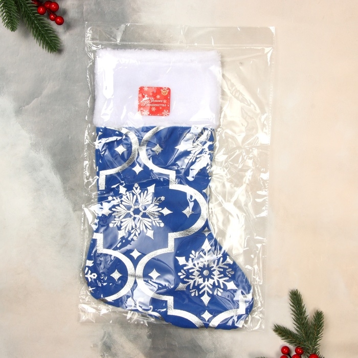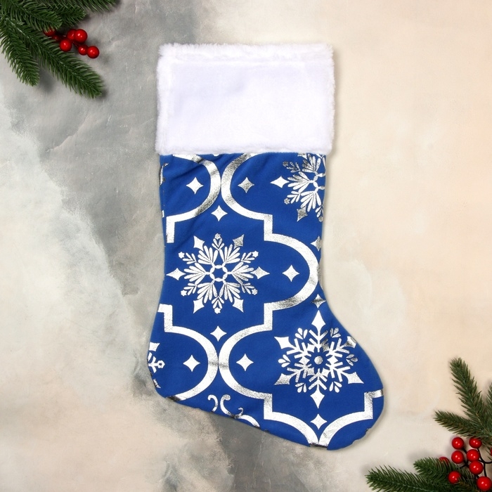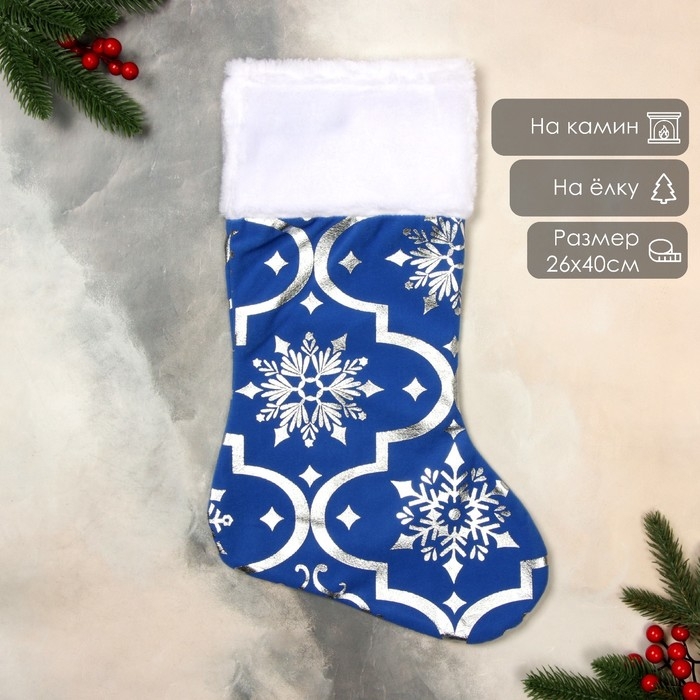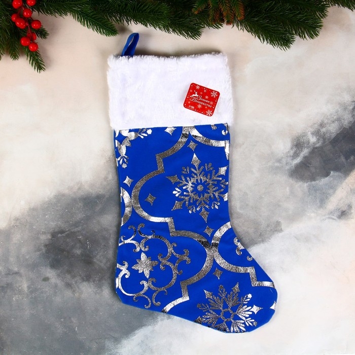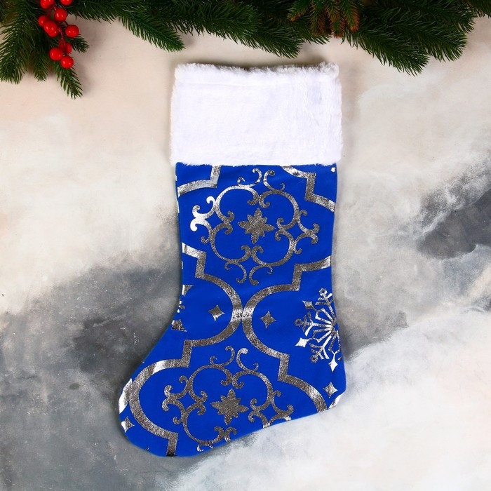 Носок для подарков "С орнаментом" 26х40 см, синий