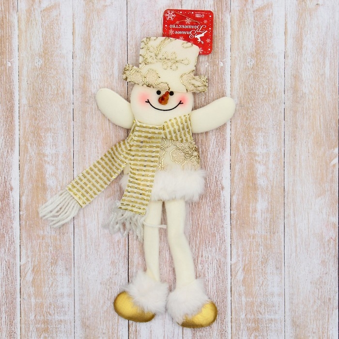 Мягкая подвеска "Снеговик в костюмчике с цветами, длинные ножки" 8х24 см, золото