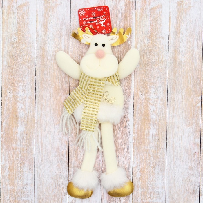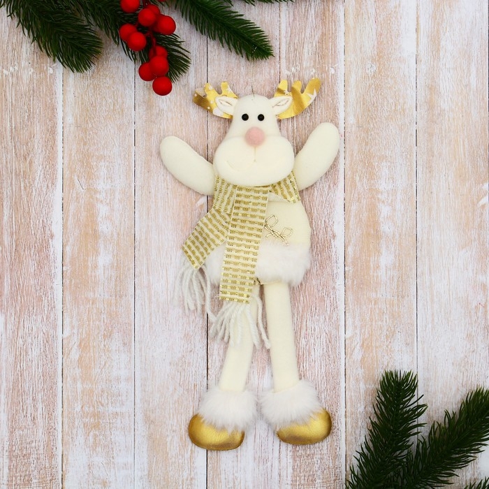 Мягкая подвеска "Олень в костюмчике с цветами, длинные ножки" 8х24 см, золото