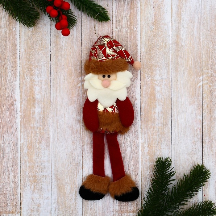 Мягкая подвеска "Дед Мороз в костюмчике с узором геометрия, длинные ножки" 8х26 см, красный 969265