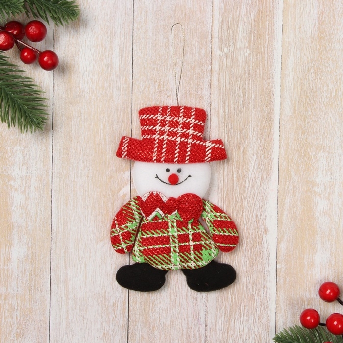 Мягкая подвеска "Снеговик в клетчатом костюме" 7х11 см, красный