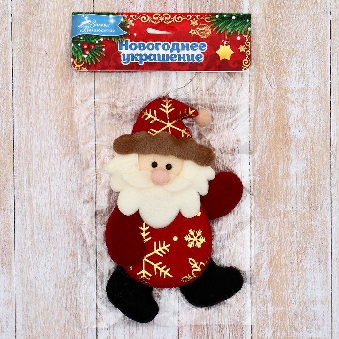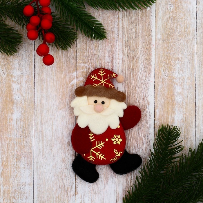 Мягкая подвеска "Дед Мороз в костюмчике с узором" 7х12 см, красный