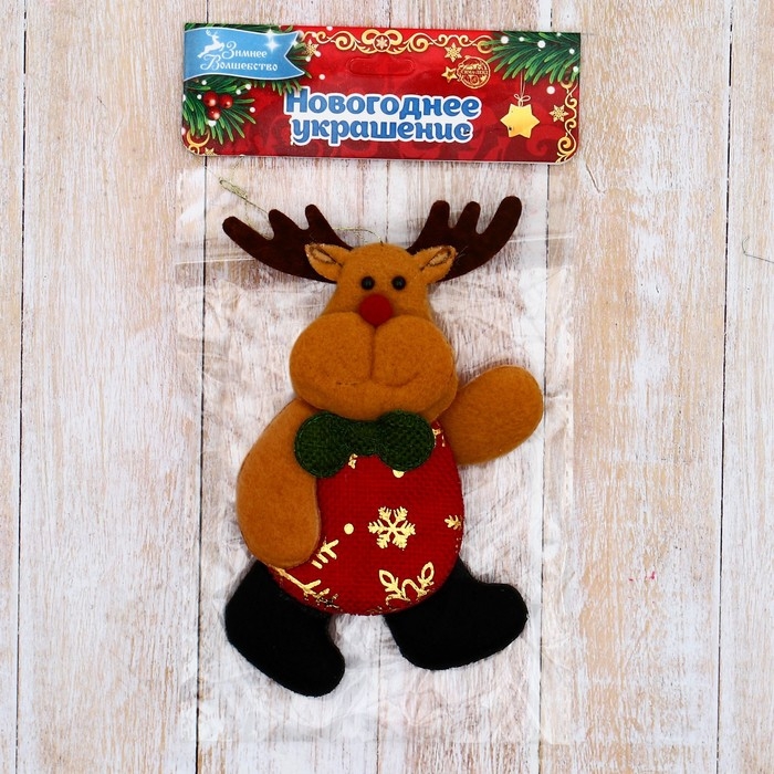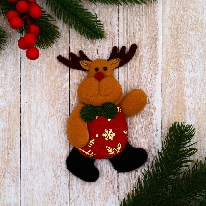 Мягкая подвеска "Олень в костюмчике с узором" 7х12 см, красный