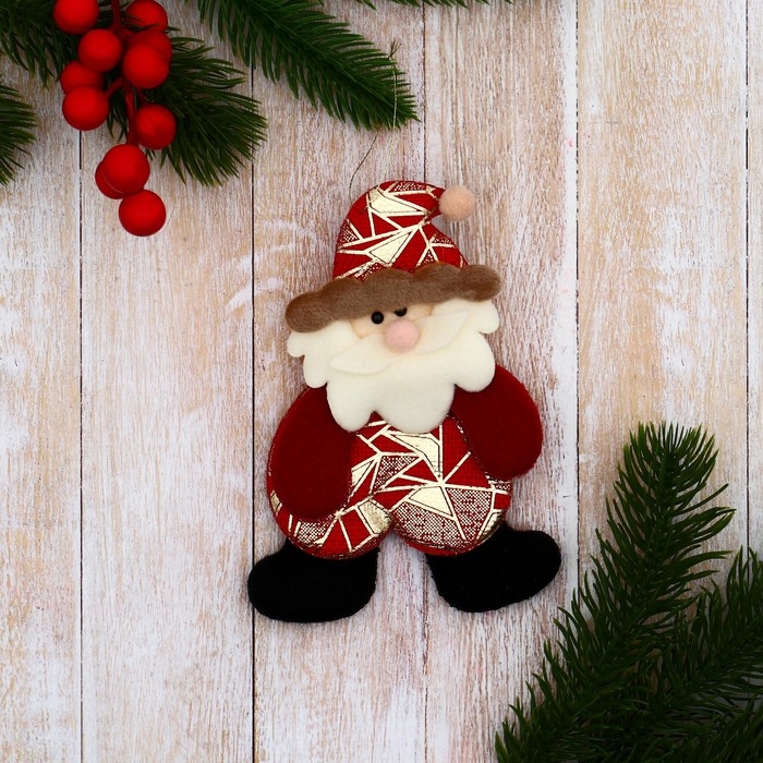 Мягкая подвеска "Дед Мороз в костюмчике с геометрическим узором" 8х13 см, красный