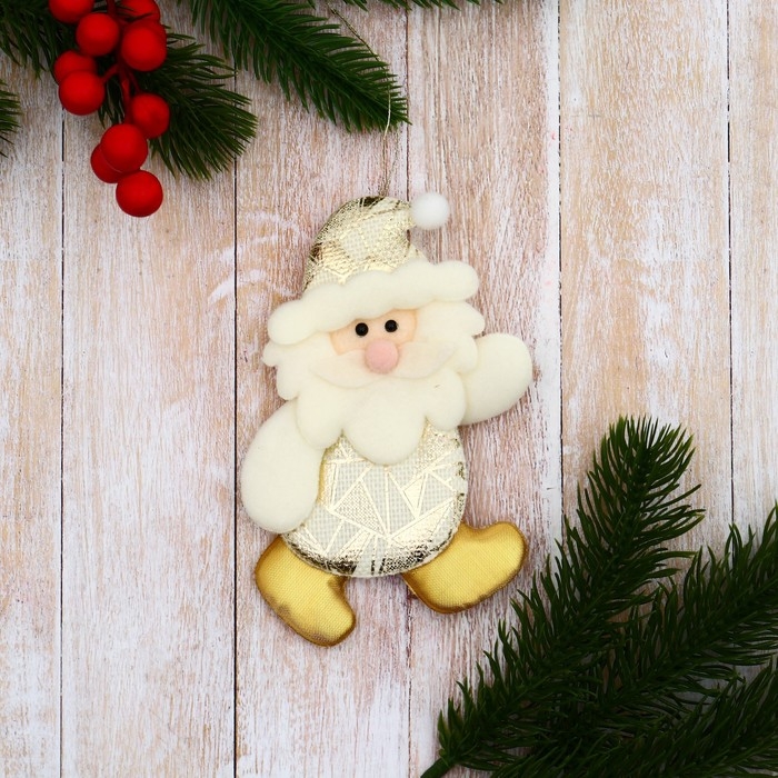 Мягкая подвеска "Дед Мороз в костюмчике с геометрическим узором" 7х13 см, золото