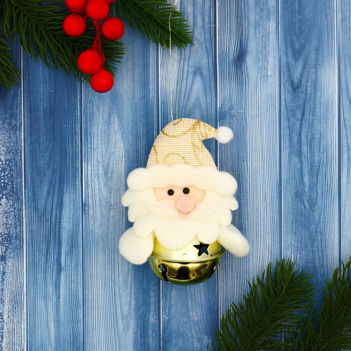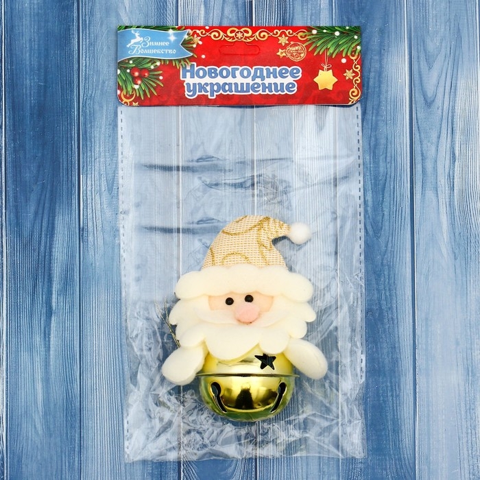 Мягкая подвеска "Дед Мороз в шарике" 5х9 см, золото