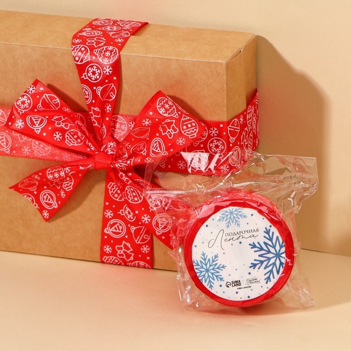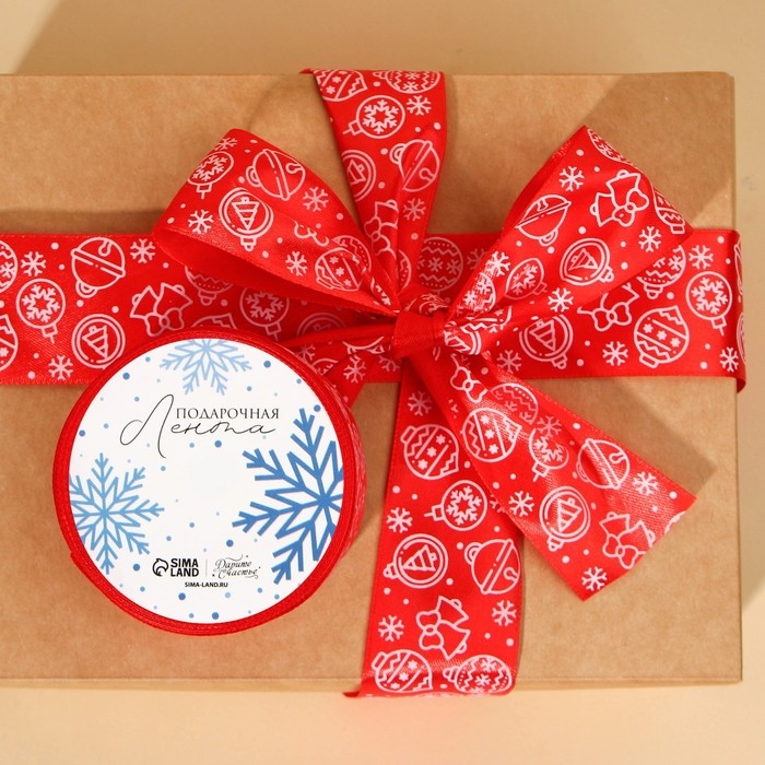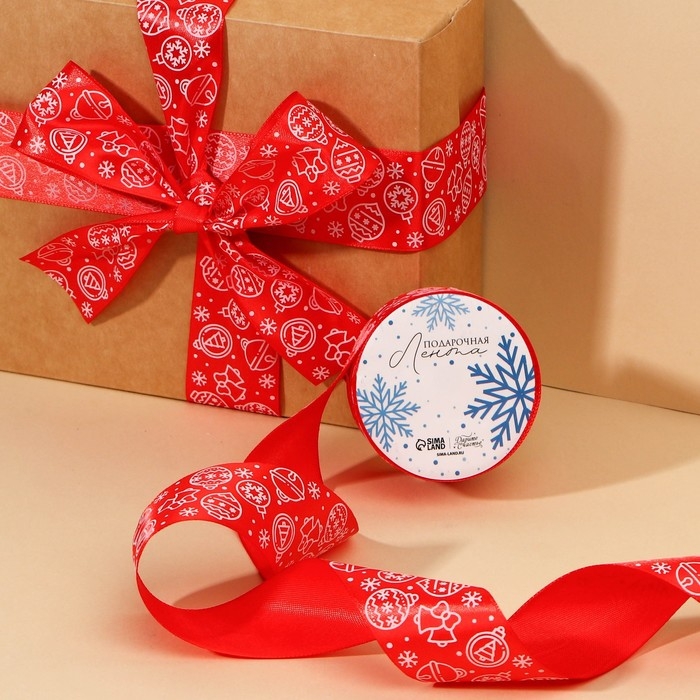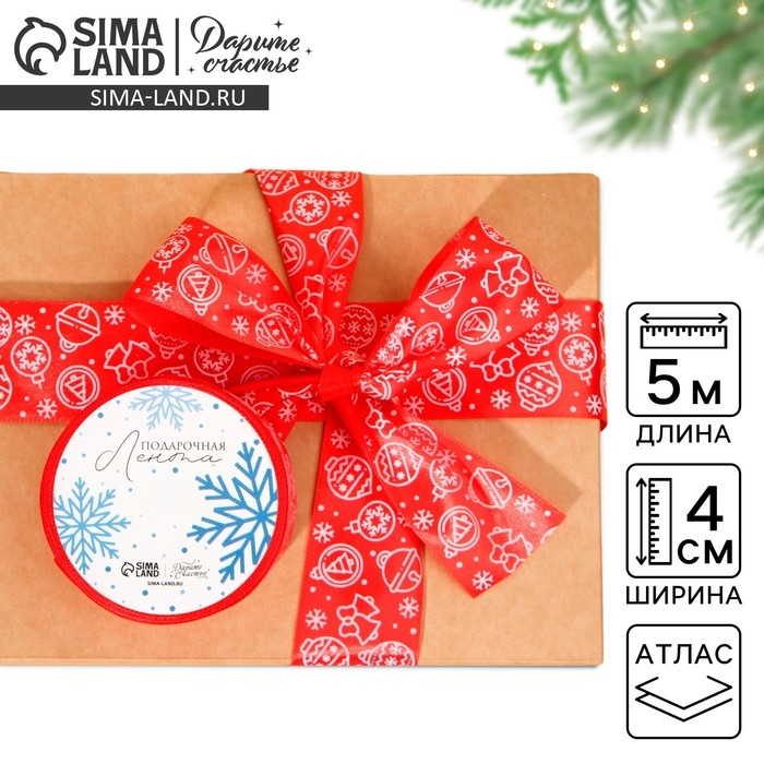 Лента атласная «Ёлочные украшения», красная , 4 см × 5 м