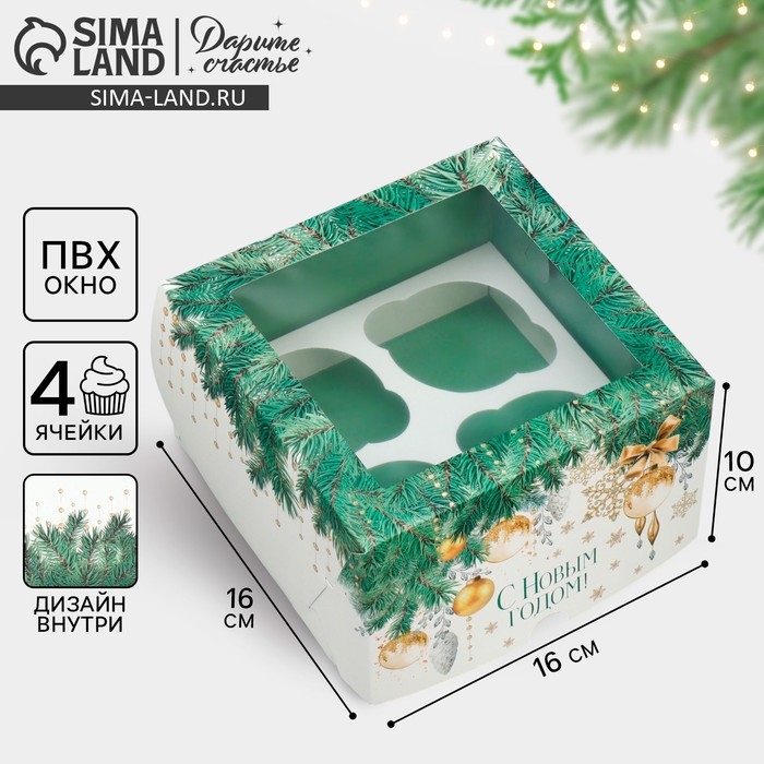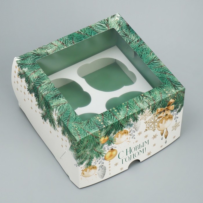 Коробка для капкейков «С Новым Годом!» 10 х 16 х 10 см, Новый год