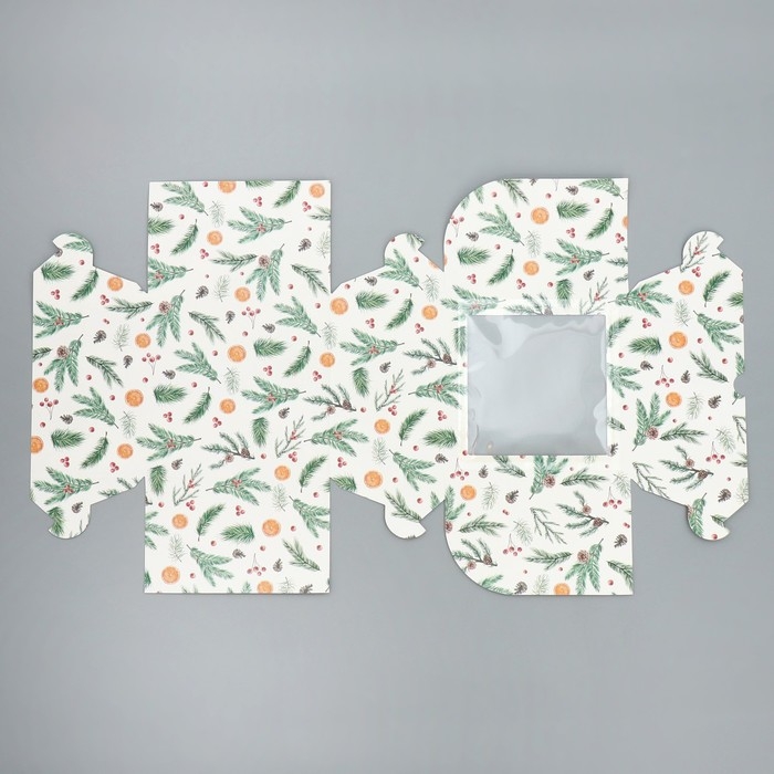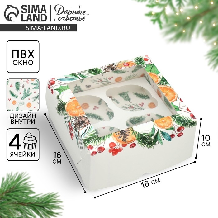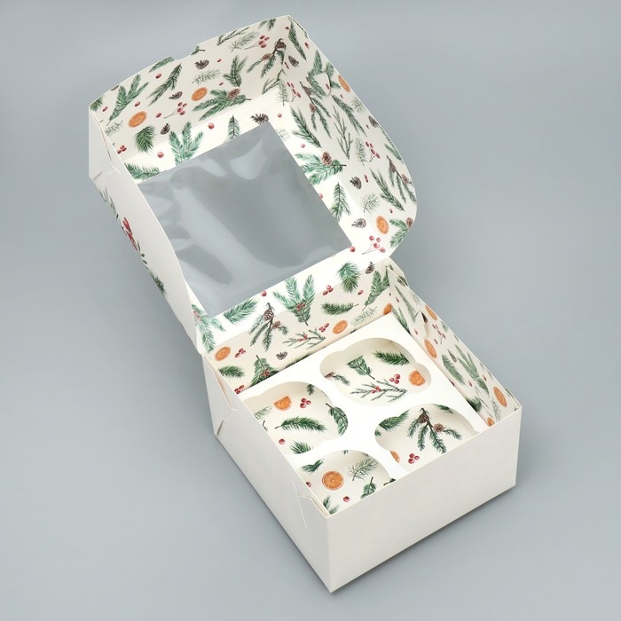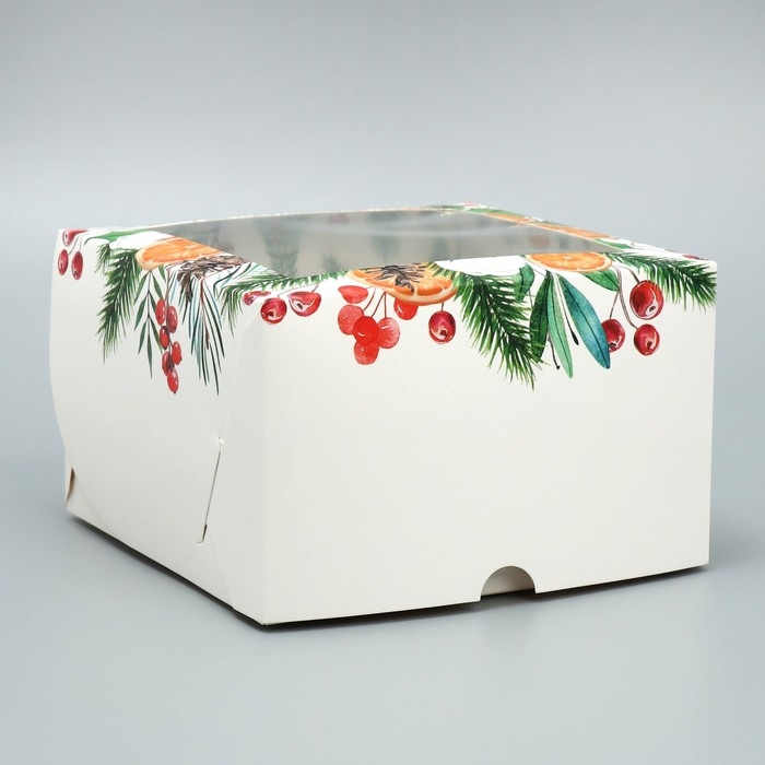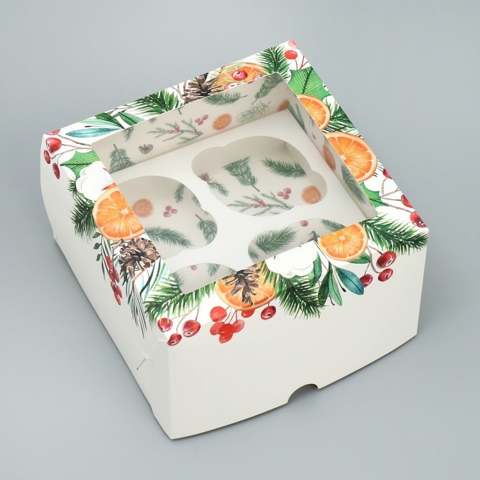 Коробка для капкейков складная с двусторонним нанесением «Венок», 16 х 16 х 10 см, Новый год