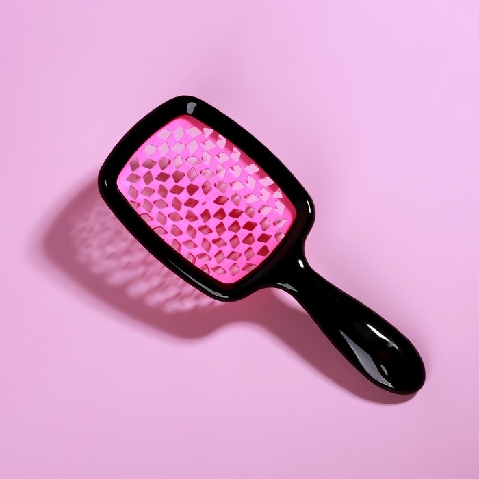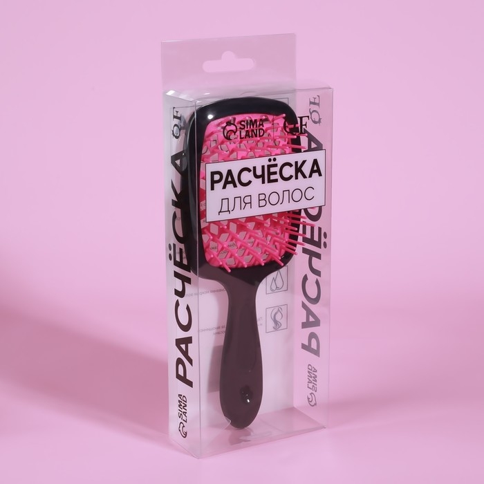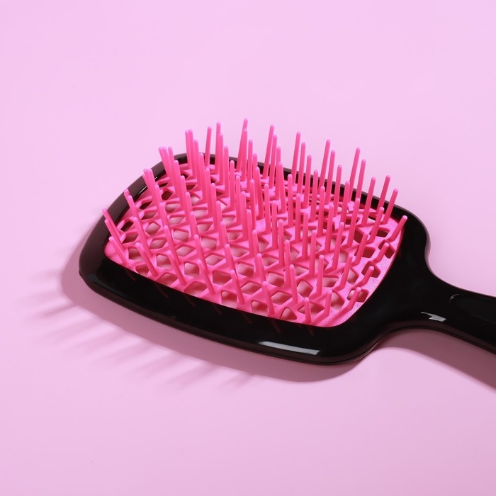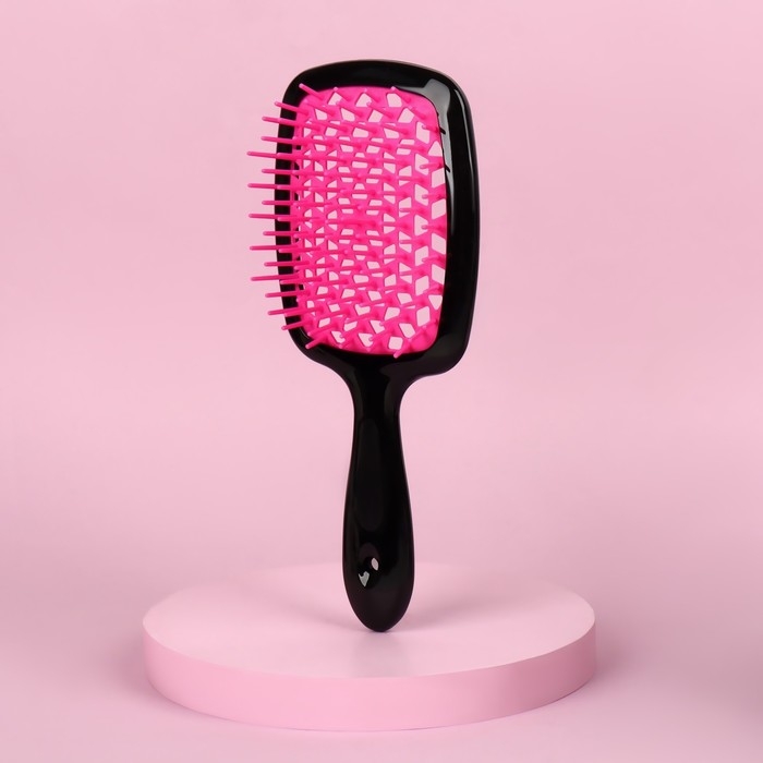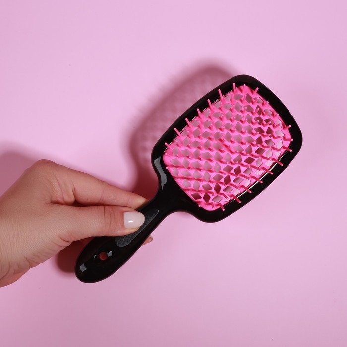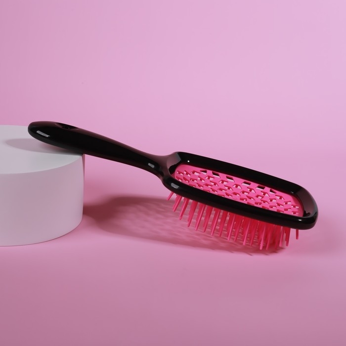 Расчёска массажная, широкая, вентилируемая, 8,5 × 20,5 см, PVC коробка, цвет чёрный/розовый