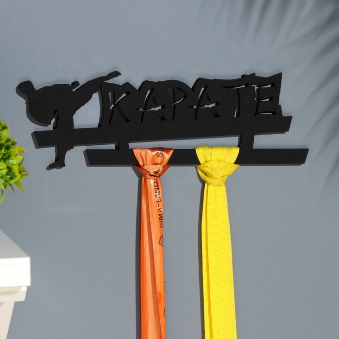 Медальница "Карате" чёрный цвет, 28х12 см