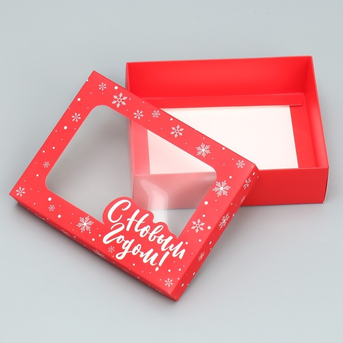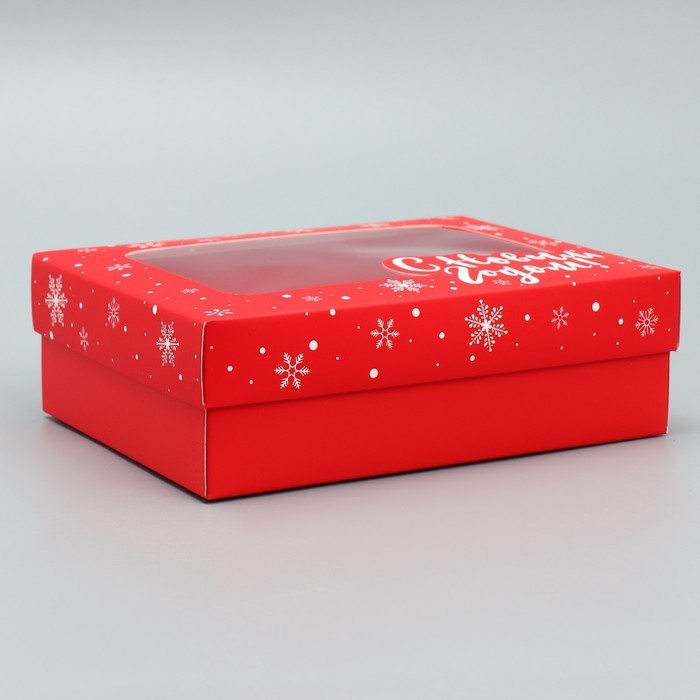 Коробка подарочная новогодняя складная «С Новым годом», красная, 16.5 х 12.5 х 5 см, Новый год