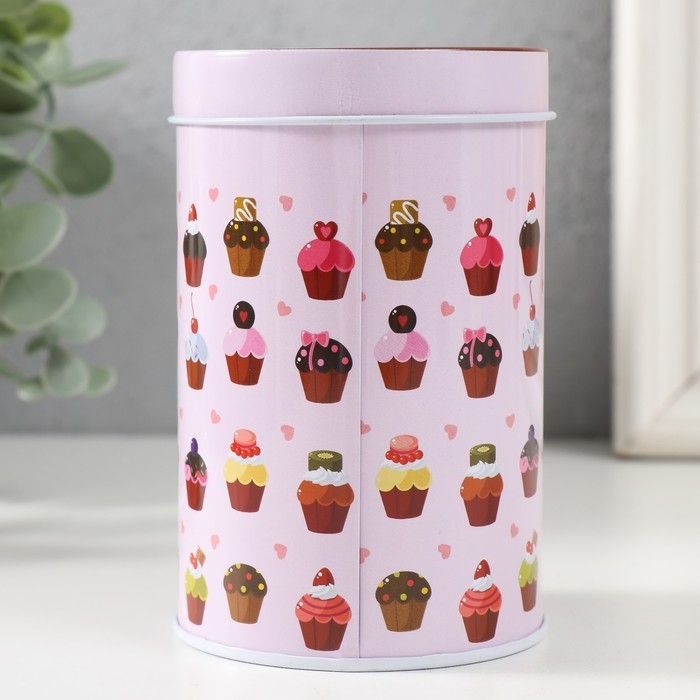 Шкатулка металл цилиндр "Кексики" 7,5х7,5х11 см