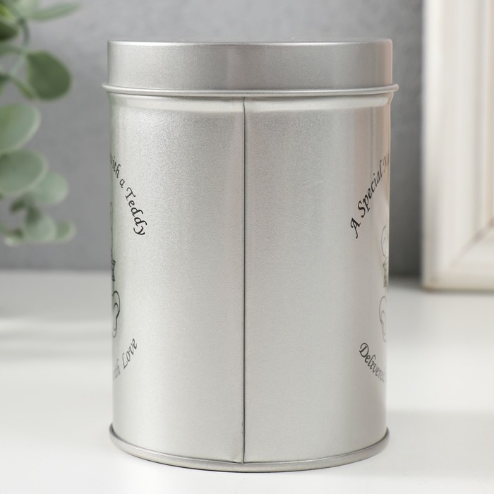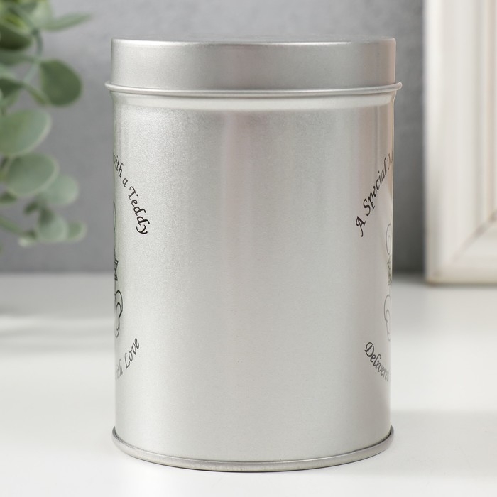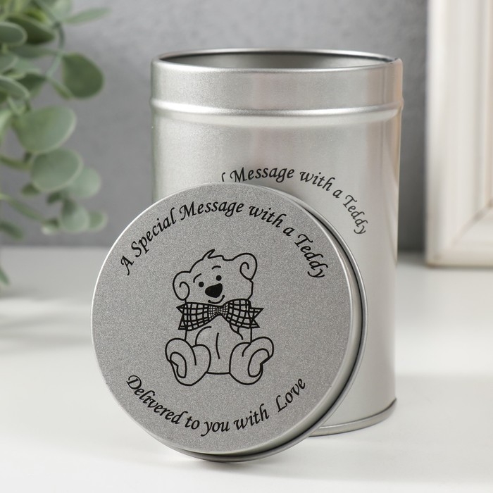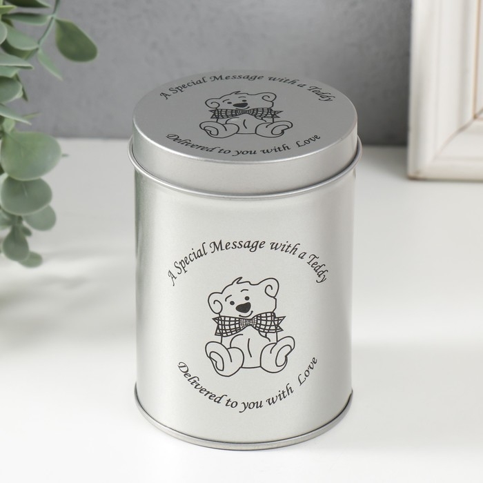 Шкатулка металл цилиндр "Медвежонок сбантом" 7,5х7,5х11 см
