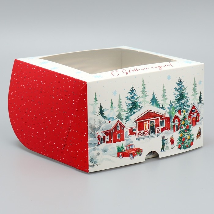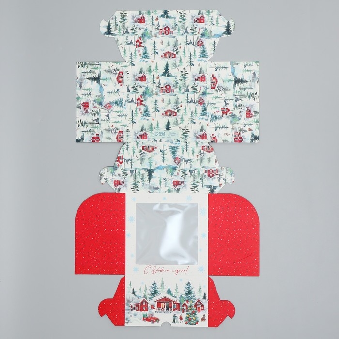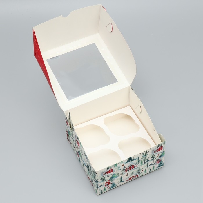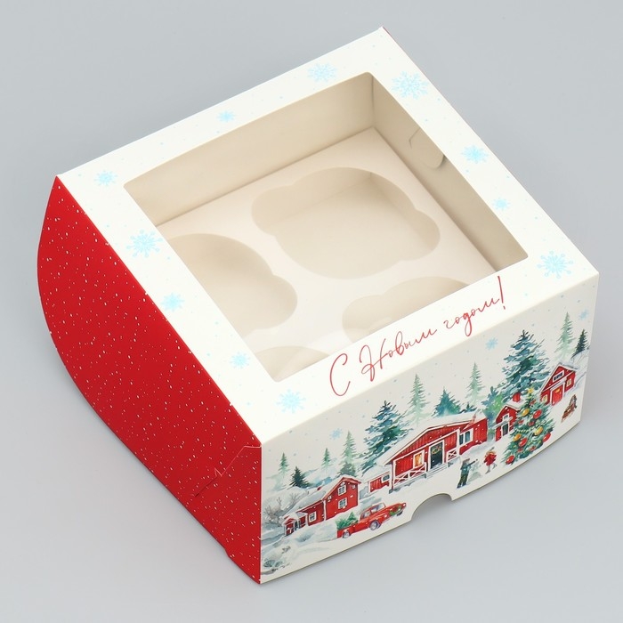 Коробка складная на 4 капкейка с окном «С Новым годом!», 16 х 16 х 10 см, Новый год