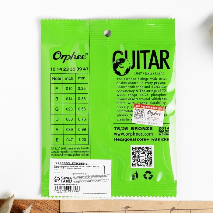 Струны для акустической гитары Orphee TX620, 010-047, фосфорная бронза