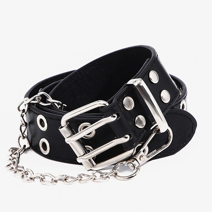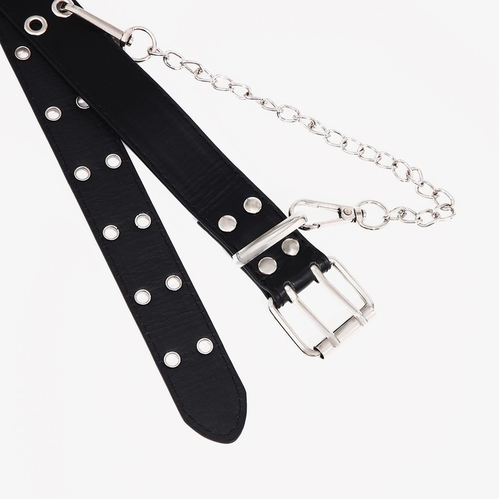 Ремень детский, ширина 3 см, пряжка металл, люверсы, цвет чёрный