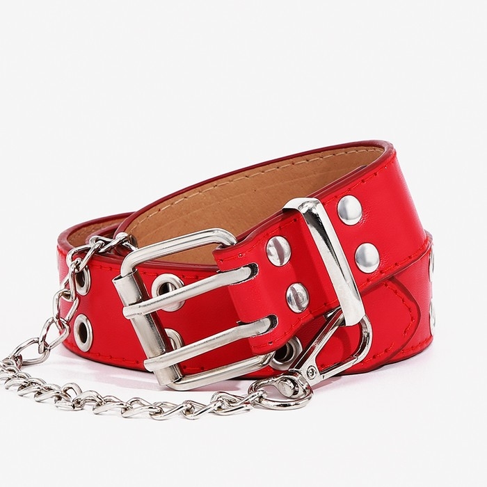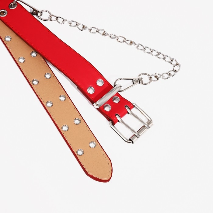 Ремень детский, ширина 3 см, пряжка металл, люверсы, цвет красный