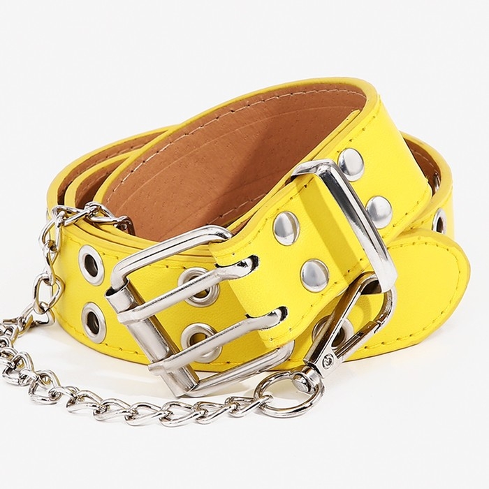 Ремень детский, ширина 3 см, пряжка металл, люверсы, цвет жёлтый